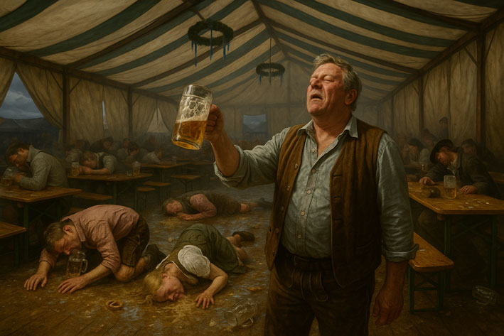 Woasd, wenn Wiesn is flackd bei mir in der Lindwurmstraß oiwei a Haufa Glump auf da Straß. Iwaroi Glosscherm. Iweroi a Gschpeiberts, Dreeg und Lettn. Im Bus am Sitz. Wosd hischausd hod scho eppa higschbiem. Habi gsagd, Dinringer, habi gsagd, lass die KI doch a Foto macha von der Lindwurmstraß zur Wiesnzeit. Howama dengd boarisch werd die KI eh ned vaschteh, und dann hobi gsagd:
